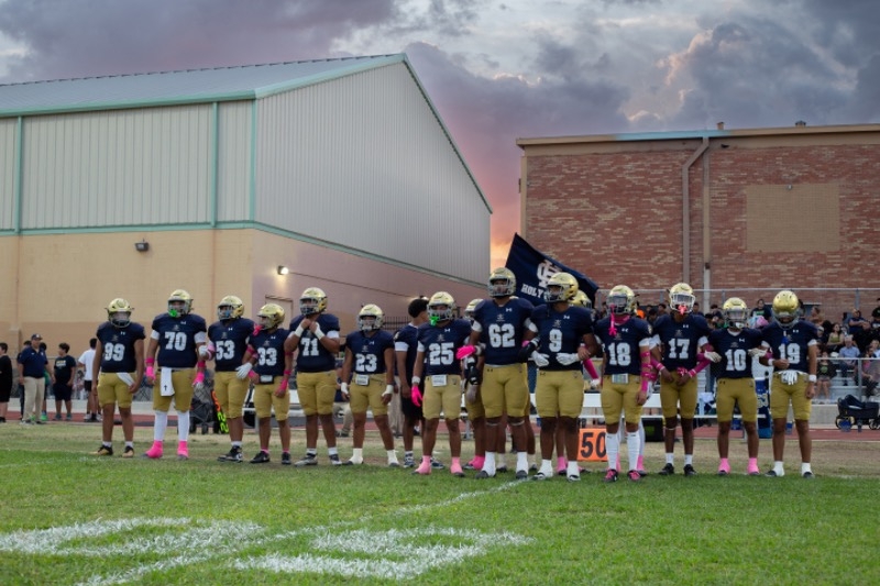 Behind a dominant 47–0 victory over John Paul II Schertz, the Knights closed out their final home game of the regular season in front of a packed, energized crowd at 426 N San Felipe. It was the kind of night every senior dreams of, where hard work, belief, and brotherhood all come together under the lights.