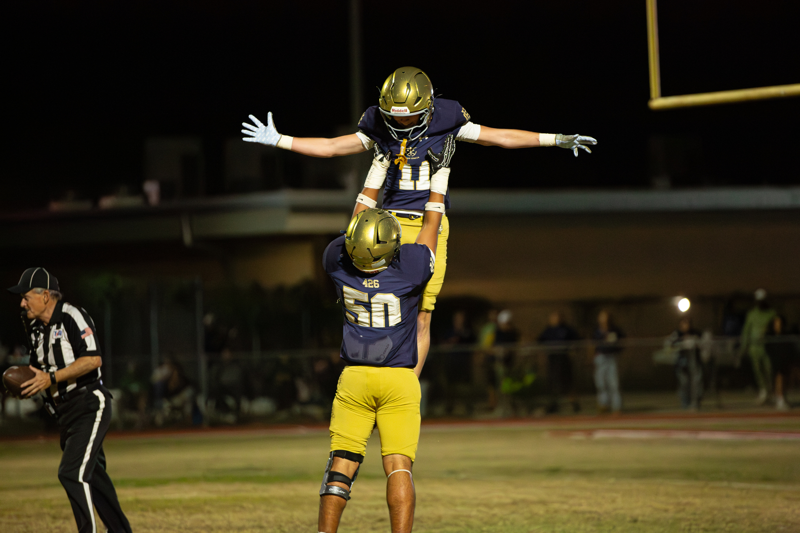 In the second half, junior AJ Eguia added a 39-yard touchdown grab, and senior Julian “J.R.” Salas capped the night with a 50-yard touchdown, giving the Knights 48 points in their final home game of the season.