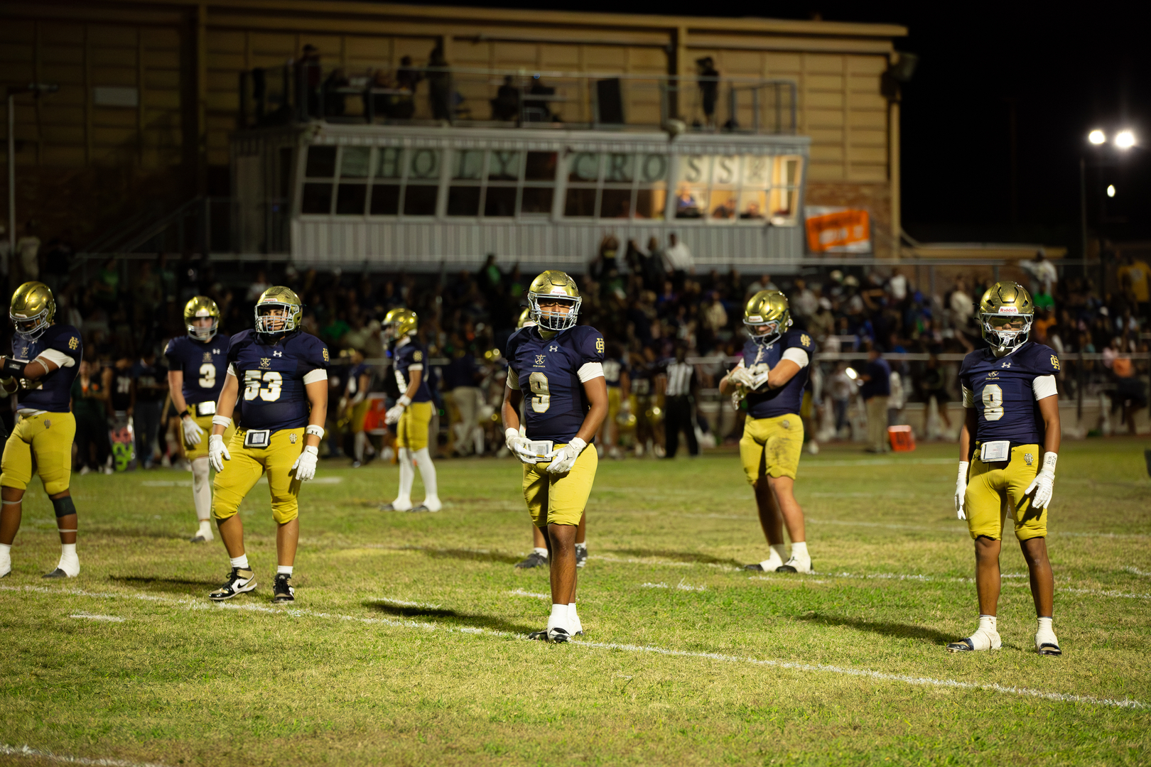 On a cold playoff night at The 426, Holy Cross left no doubt. In their final home game of the season, the Knights took full advantage of their home field advantage, dominating Fort Worth Lake Country Christian 48-14 in the TAPPS Division III Area Championship to move on to the Regional Championship.